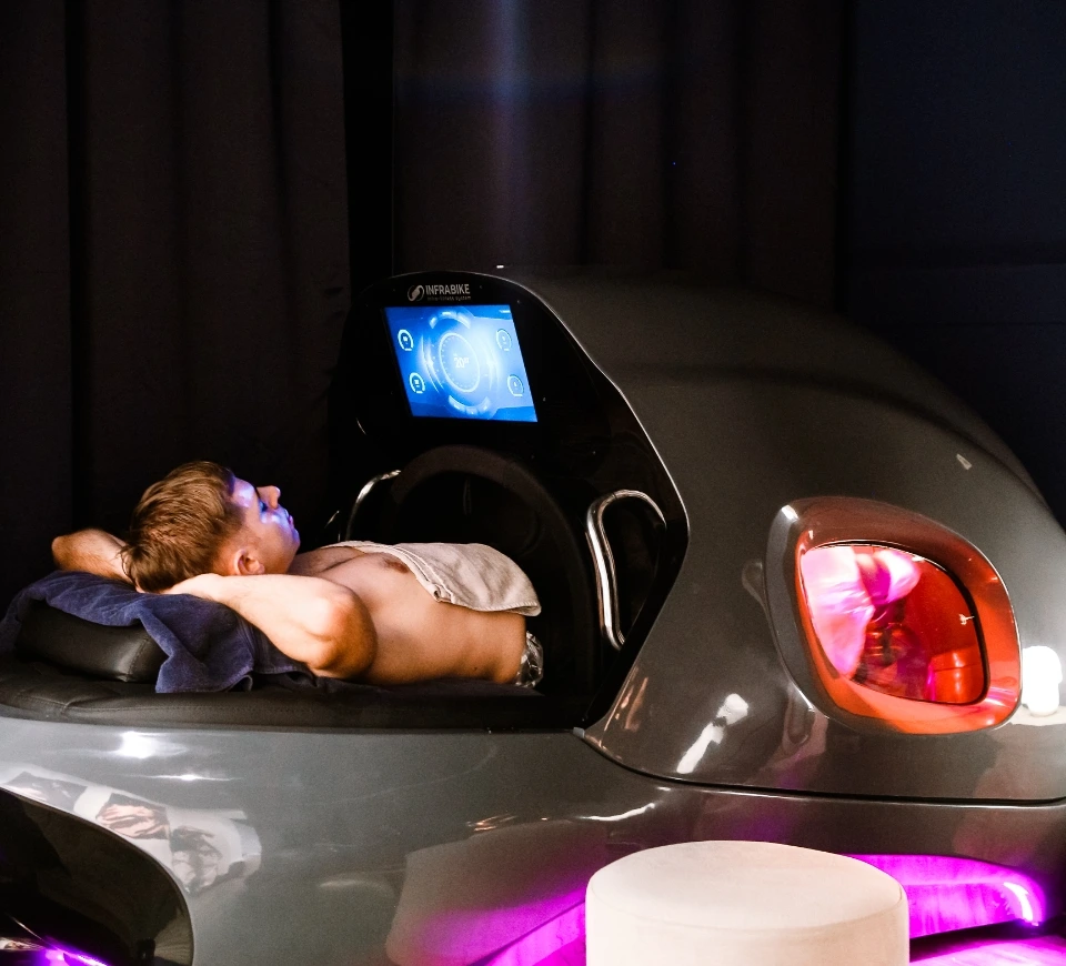 L’Infrabike allie vélo allongé, chaleur infrarouge et apesanteur, offrant jusqu’à 2 000 calories brûlées en 30 minutes.